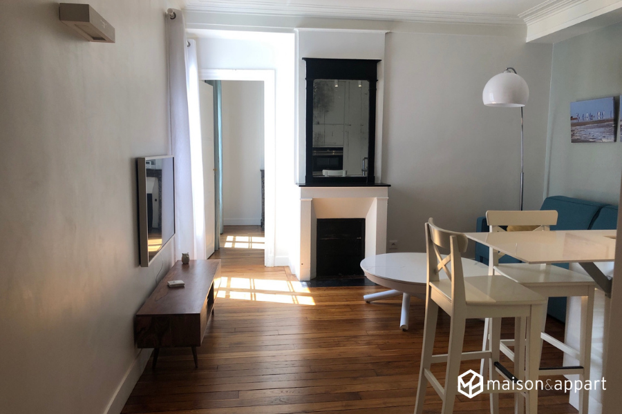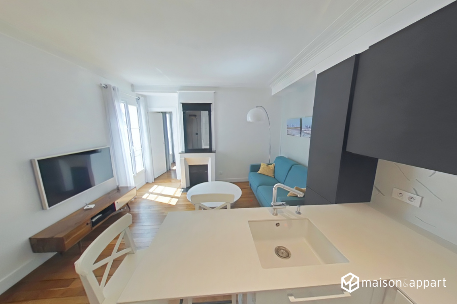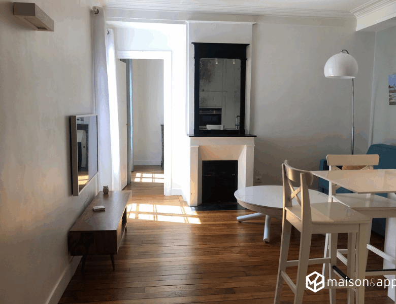 Situé au 4ᵉ étage avec ascenseur, cet appartement lumineux de 38 m² séduit par son charme parisien, son mobilier élégant et son ambiance chaleureuse.